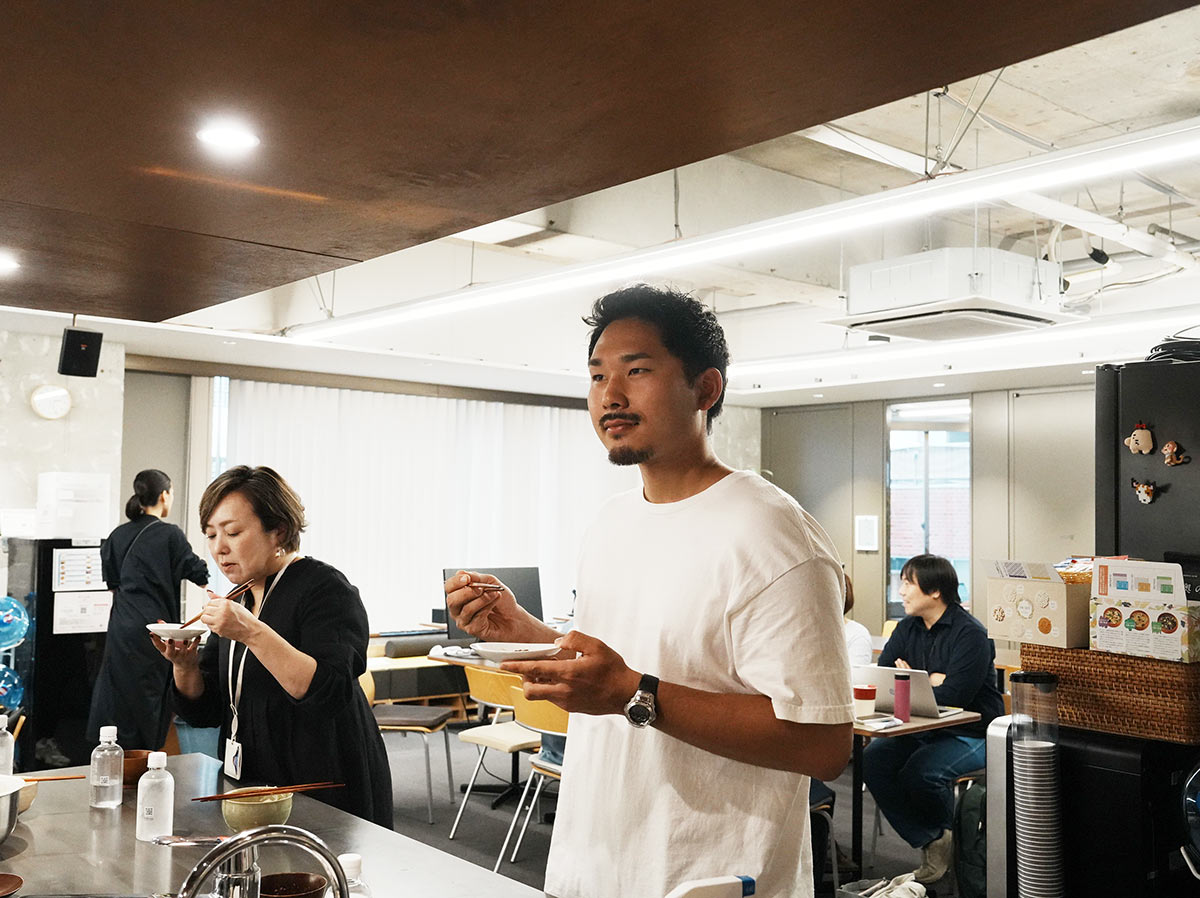 みんなで食べた試食会の様子と、