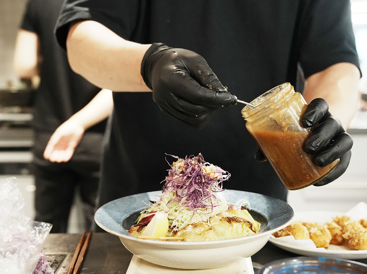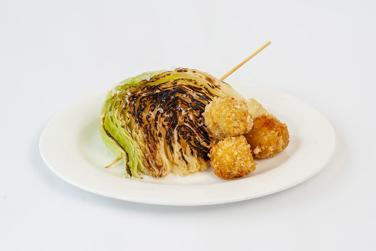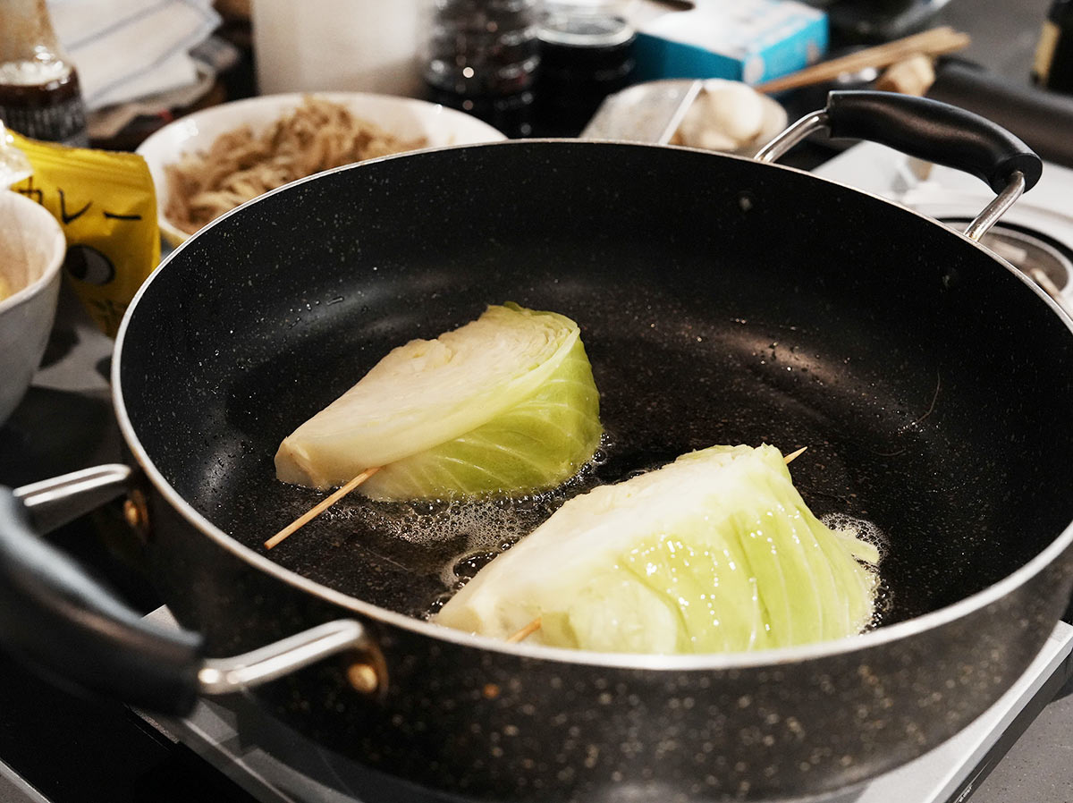 - じゃあ、片面だけちょっと焼いたキャベツに、
