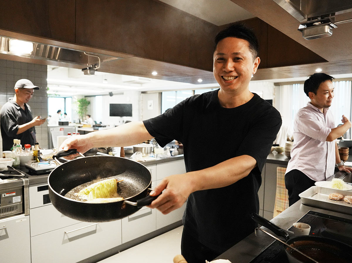 - (じゅ~っ、と焼けるキャベツに)おおーっ。