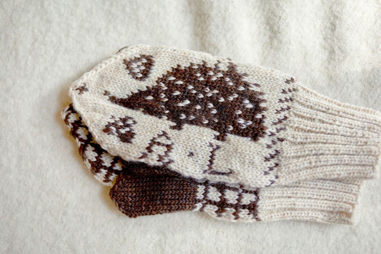 no.4は編み込み柄が素敵な「オーロラミトン」を編めます。