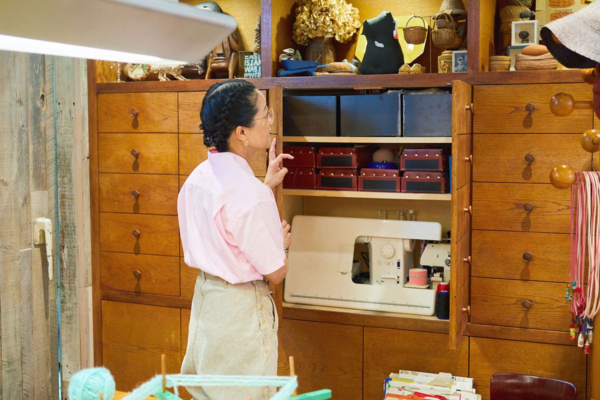 ミシンや材料など山口さんの宝物が