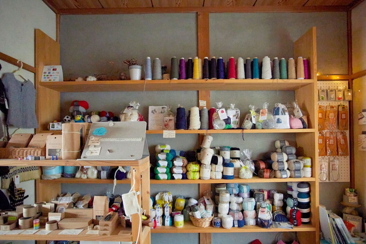 2階は毛糸と編みもの道具、そして編みもの教室のスペース。