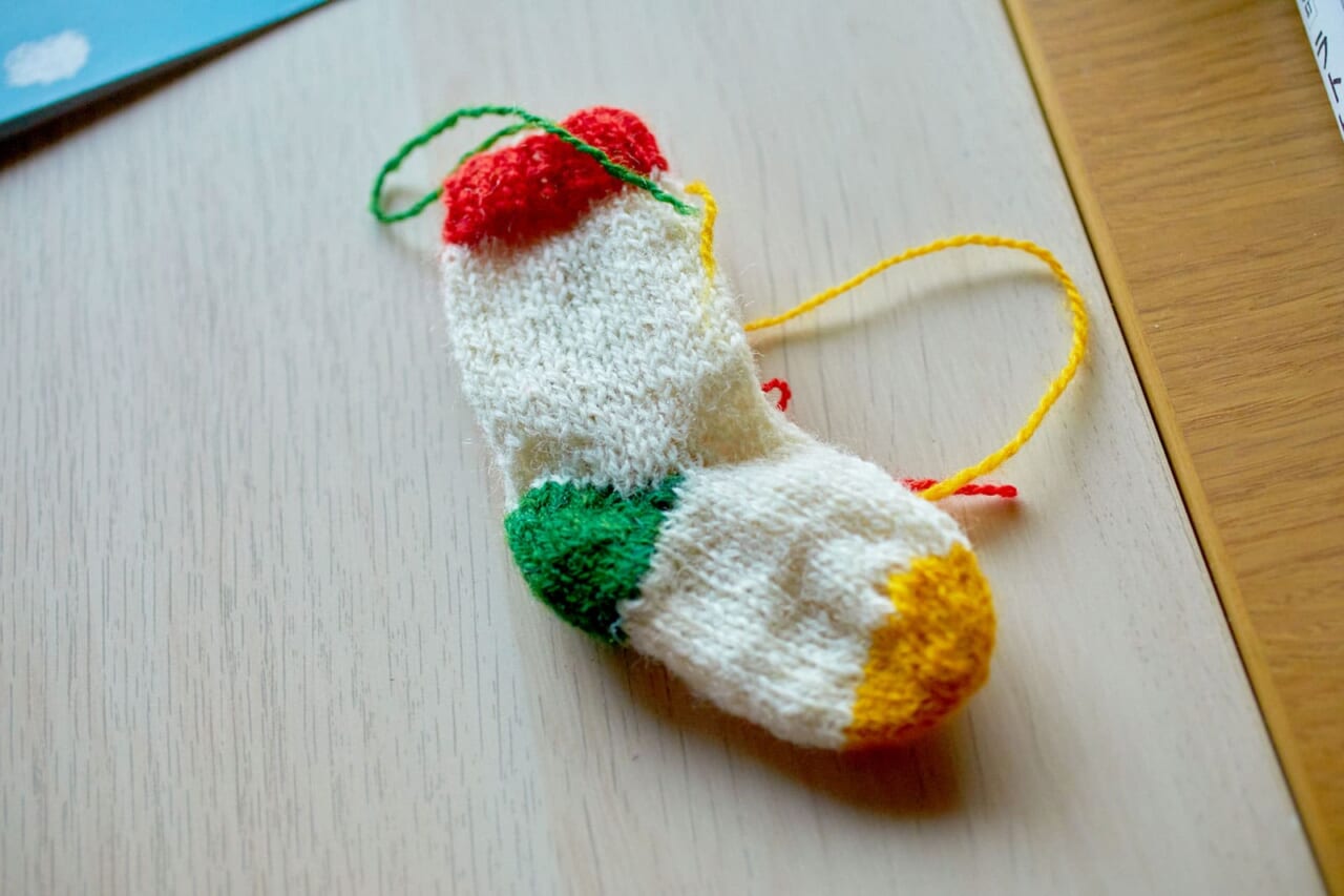 - 「これは、ラトビアの毛糸を使ったミトンです。