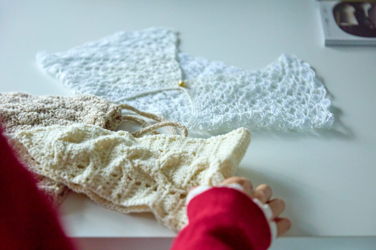 かぎ針編みでできる小物が、私の定番です」 - これまで編んだ作品の一部を、