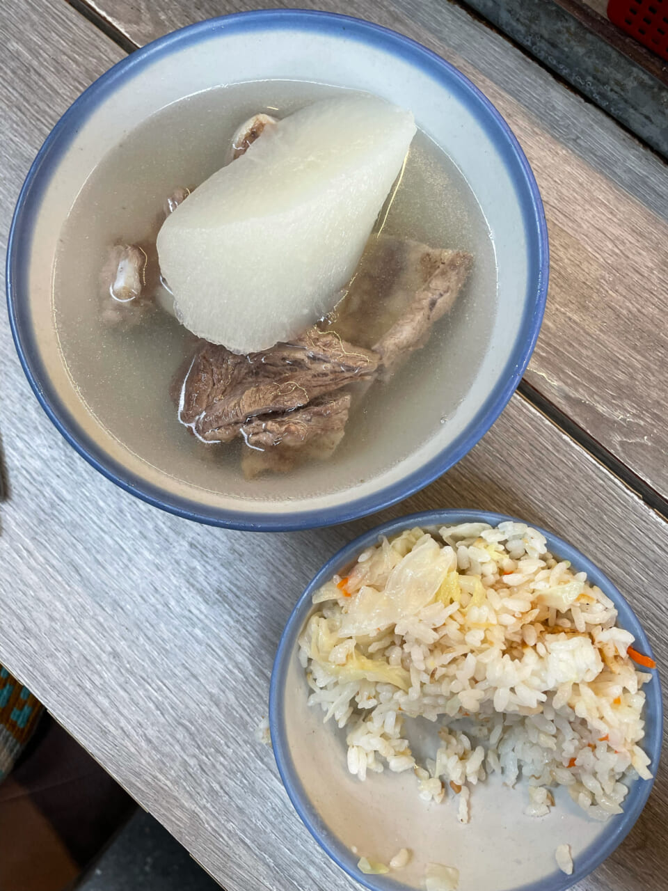 - 排骨スープは、肉と大根から沁みる出る優しい味。