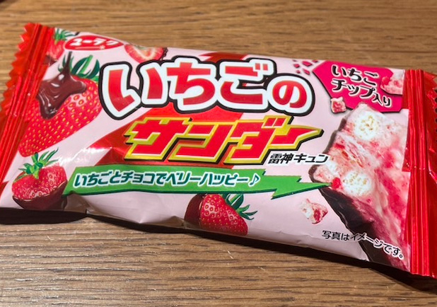季節限定のお菓子(ブラックサンダーいちご味)、