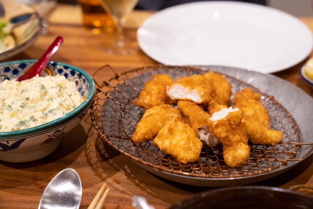 - まずは、チキン。ささみのフライですー。