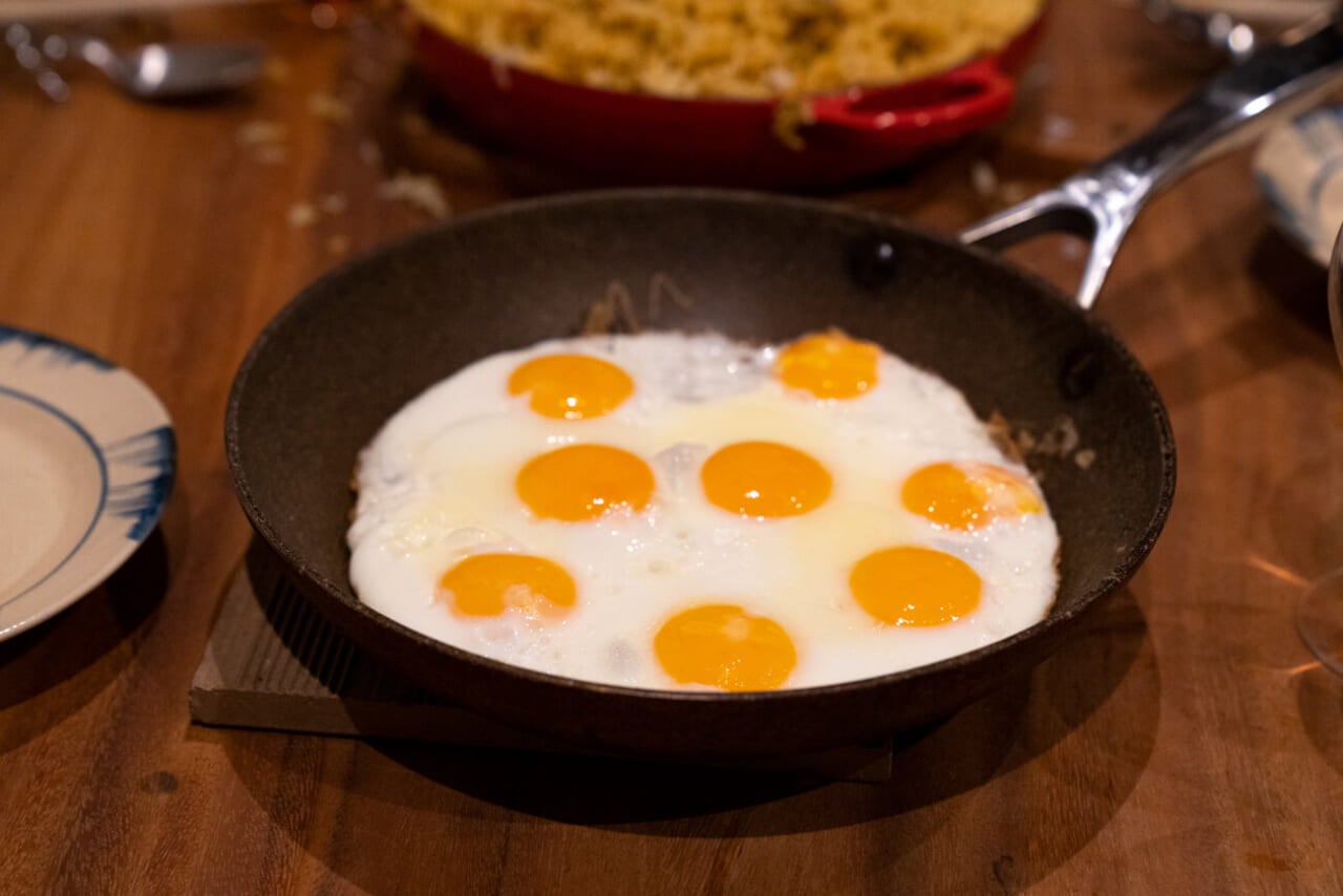 目玉焼きを8個焼いていますので、