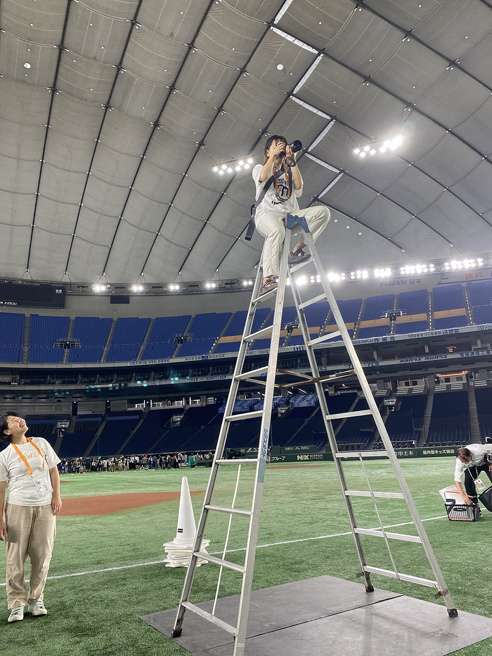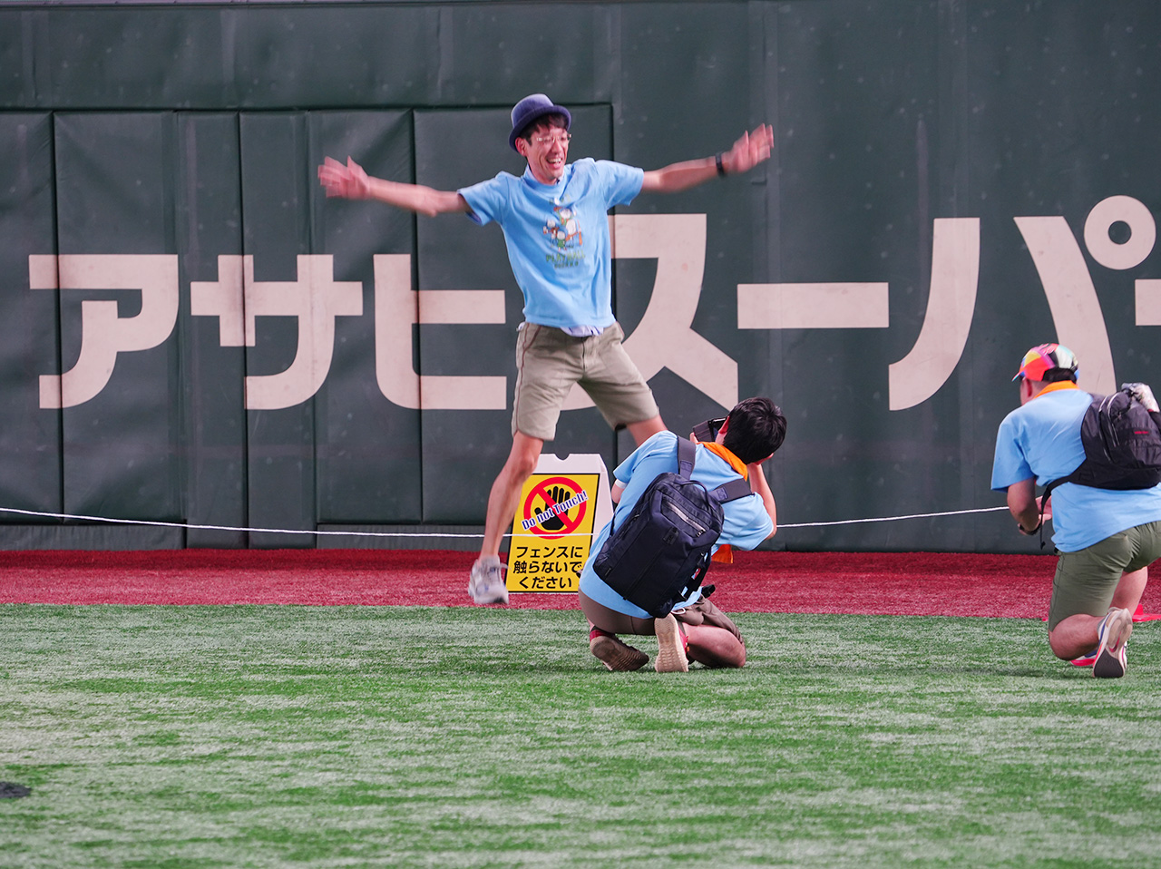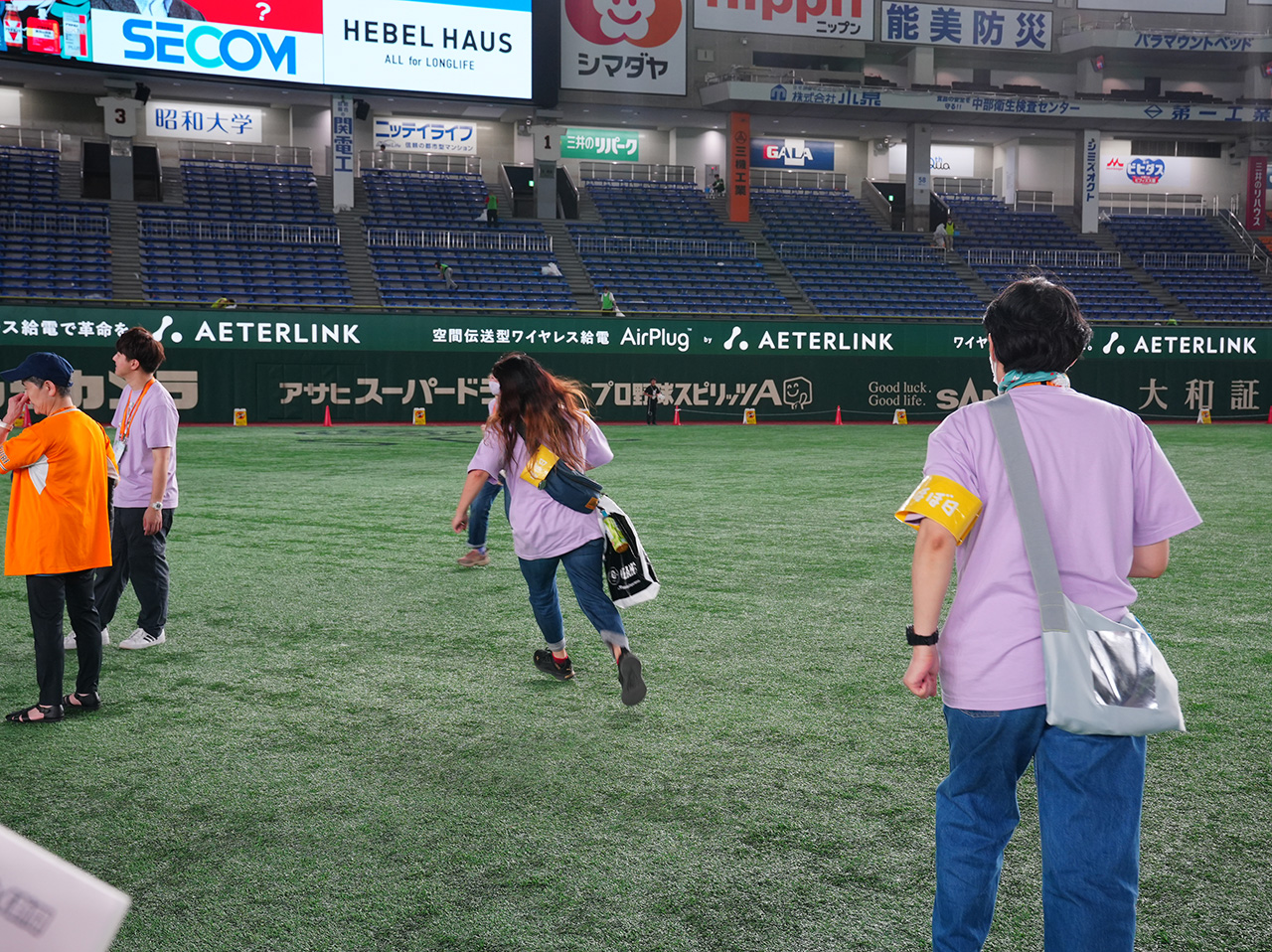 グラウンドに出て、今度はチアで、球場全体を盛り上げます!