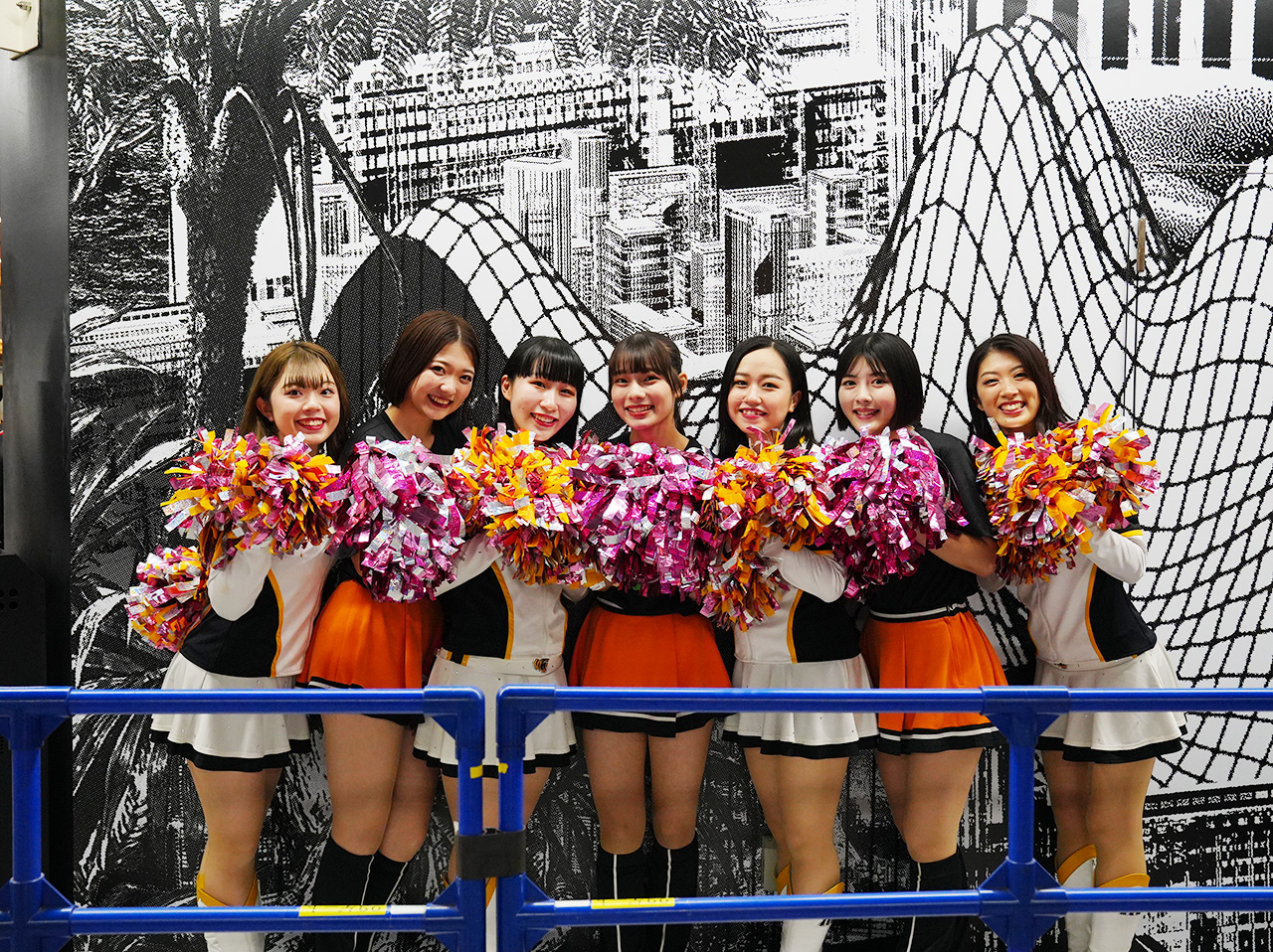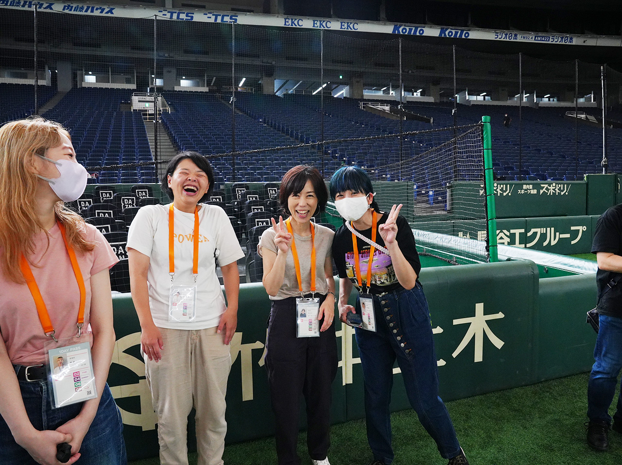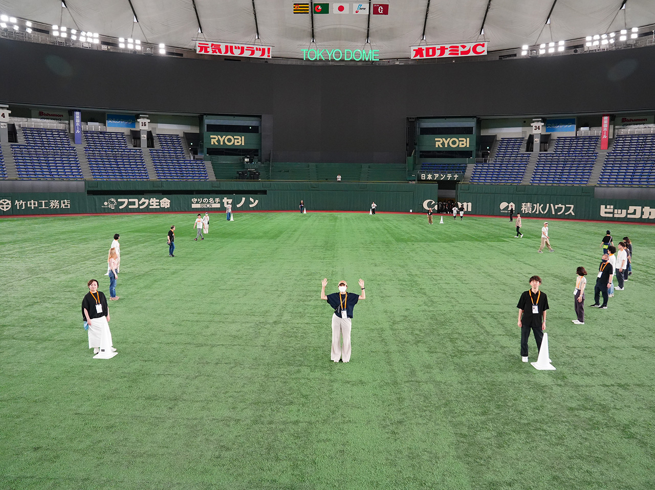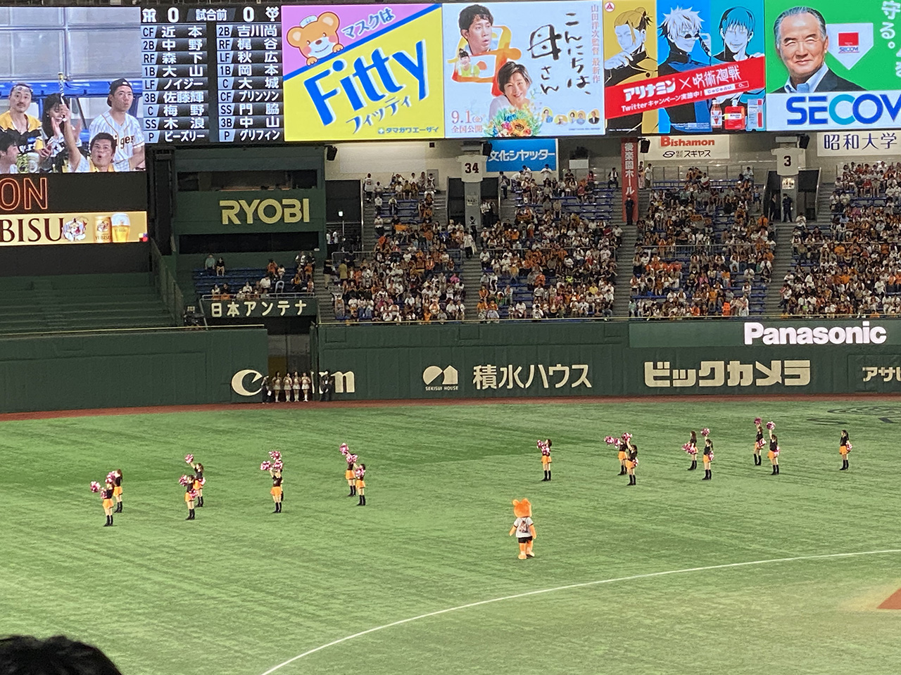 グラウンドに出て、今度はチアで、球場全体を盛り上げます!