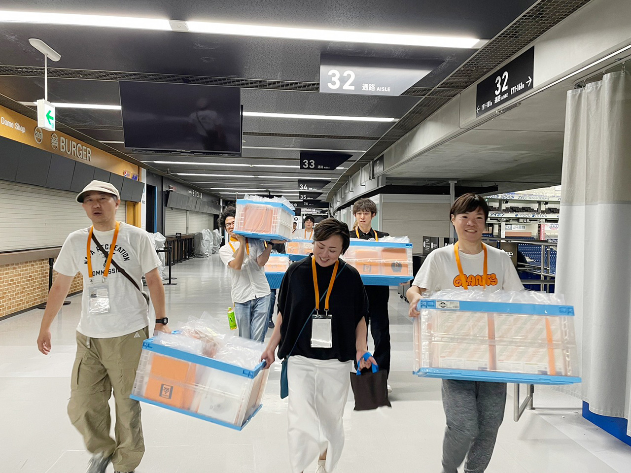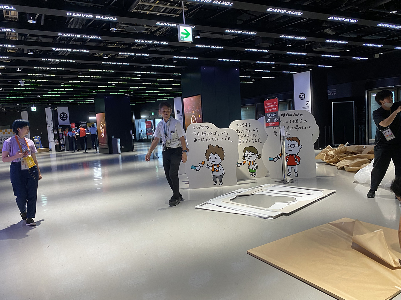 東京ドームのあちこちに飾られます。その準備も急ピッチ!