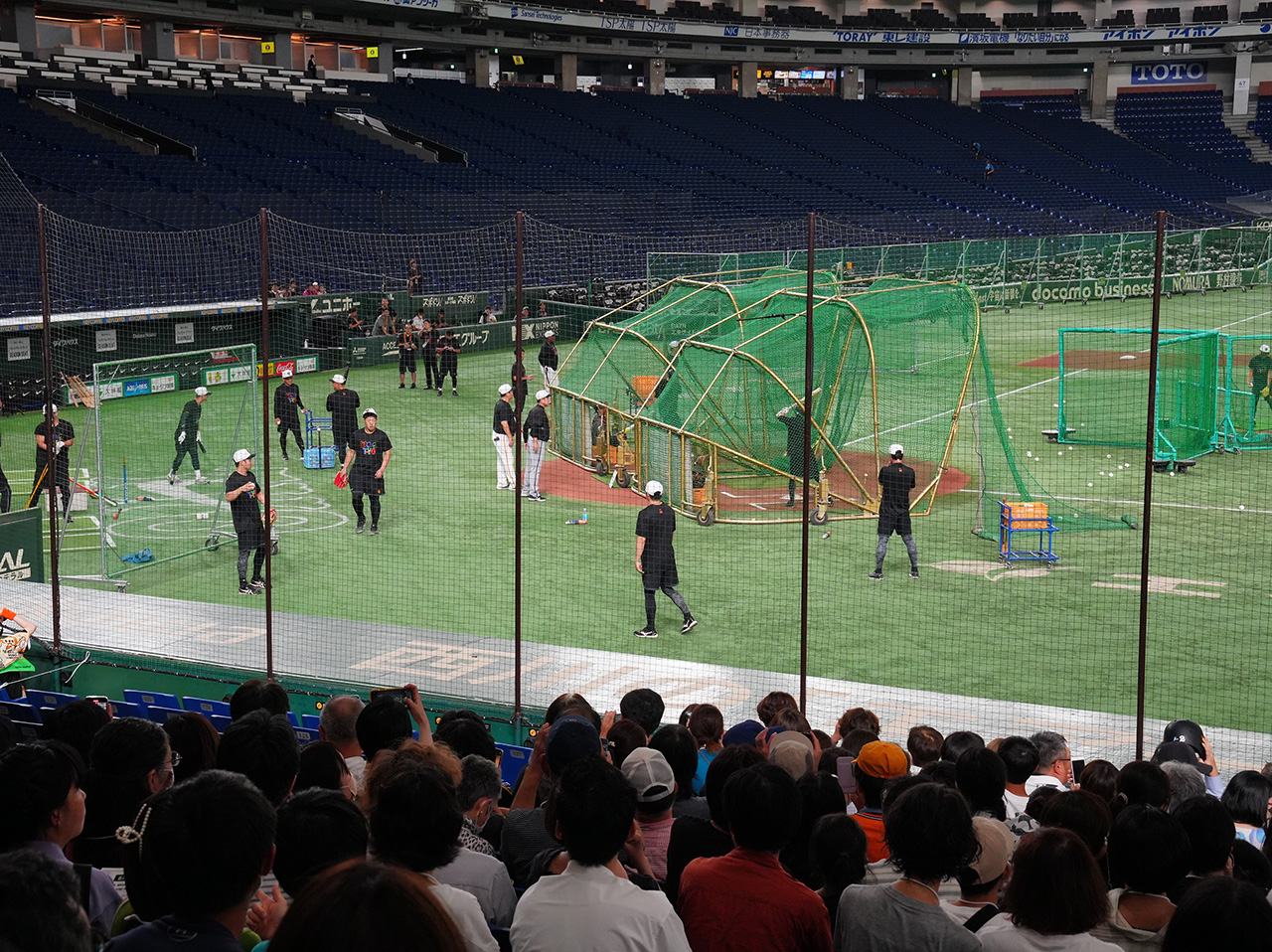 こんなに近くで、プロ野球選手の練習が観られるって、