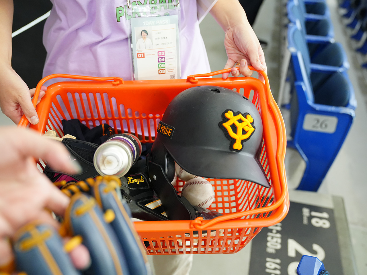 - ▲今回は、グローブやヘルメット、公式ボールに、