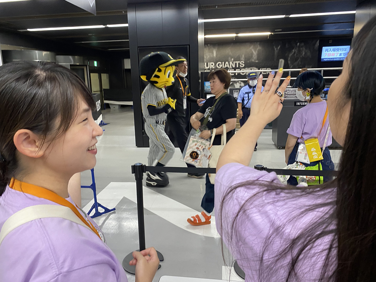 - ▲三塁側(阪神側)入口の受付前を通り過ぎるトラッキー。