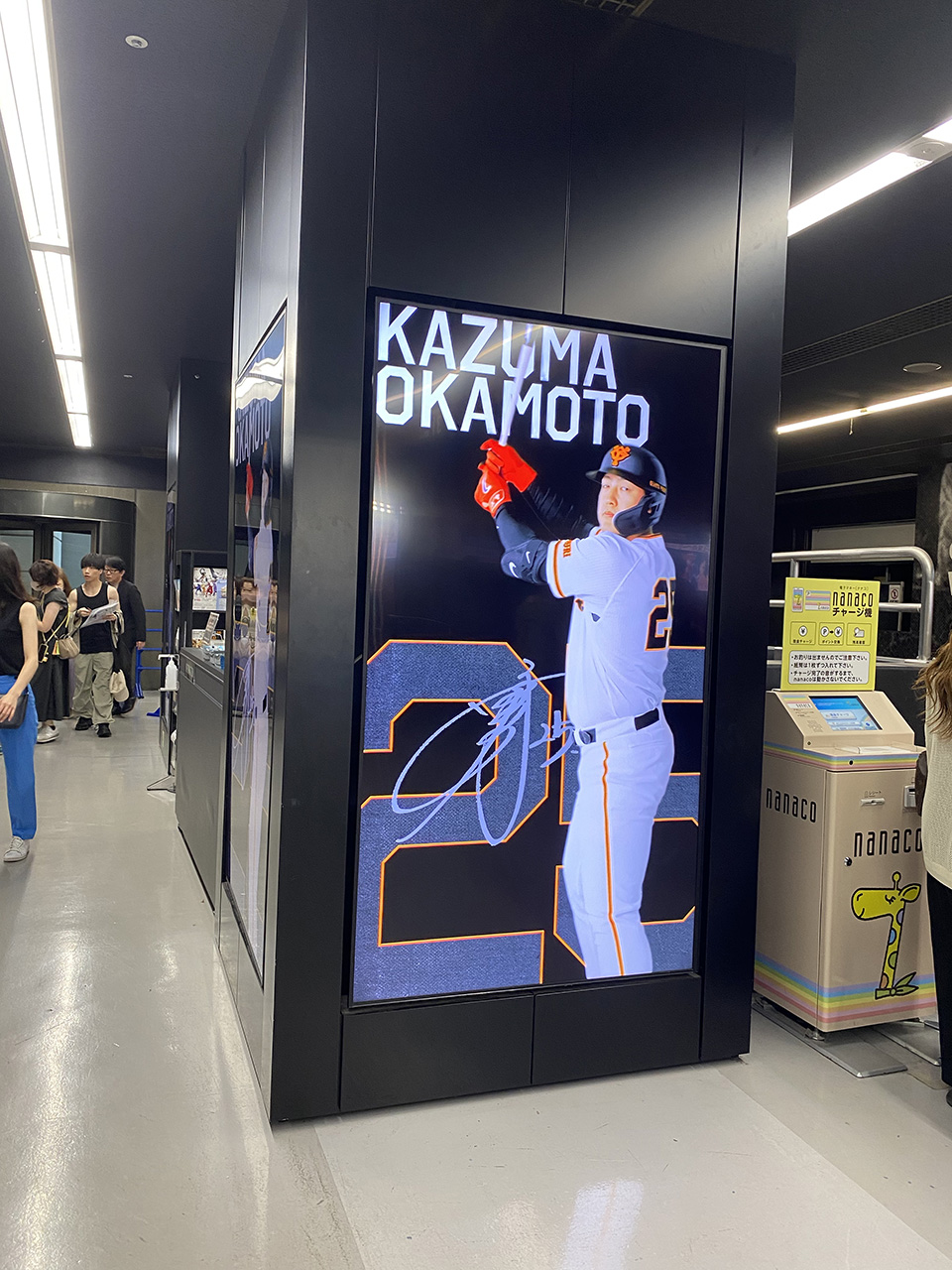 - ▲岡本和真選手も、電光パネルの中からお出迎え。