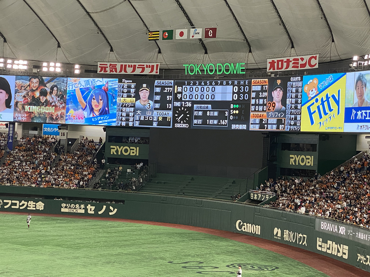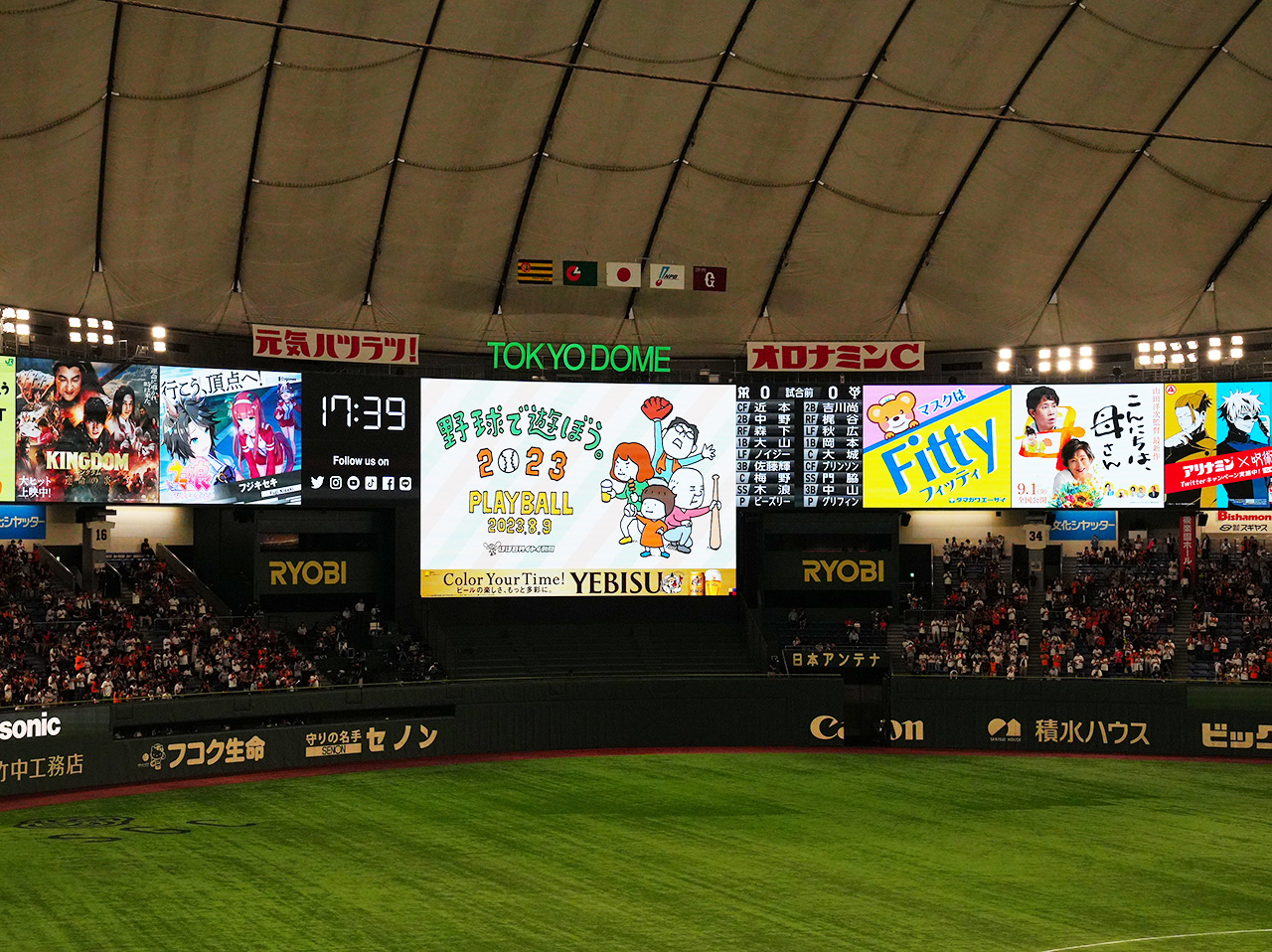 - ▲東京ドームの電光掲示板に燦然と輝く、