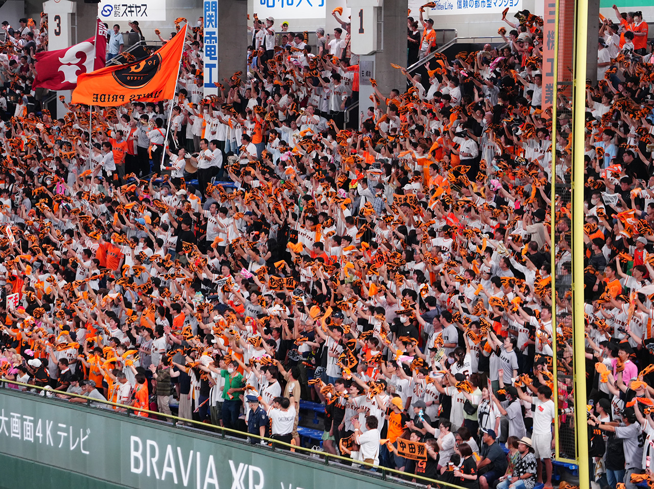 オレンジと黒の、旗やタオルが舞い上がりました。