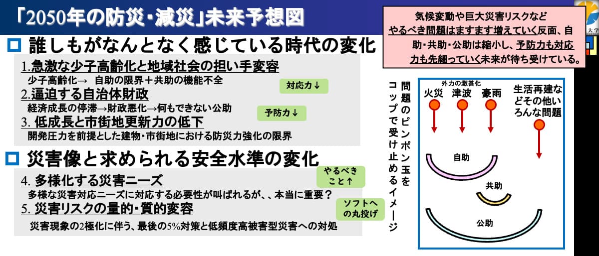 20世紀的な手法が通用しなくなる。 - また、災害の質的・量的変容も重要な今後の傾向です。