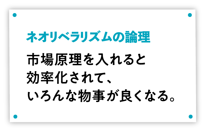 というのが、ネオリベラリズムの原理なんです。 - 20世紀後半、ケインズ経済学が失墜したあと、