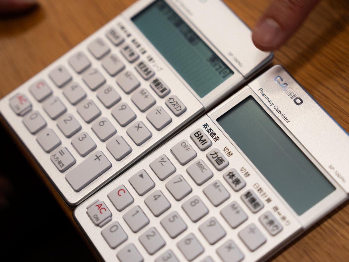 看護師さん専用と、薬剤師さん専用の電卓。