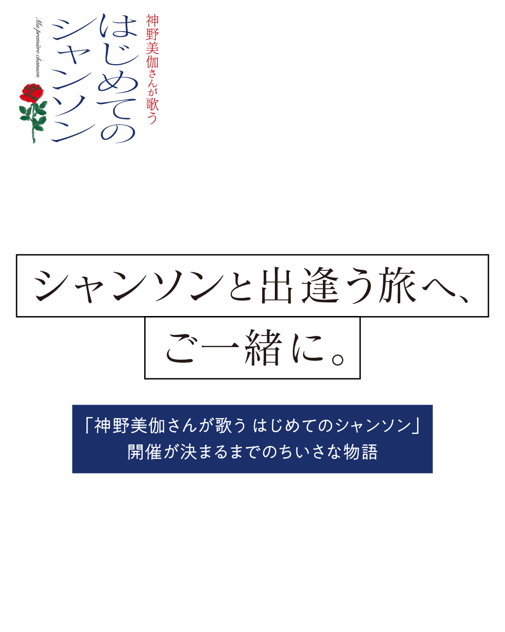 これまでジャズやロックに挑戦してきた演歌歌手の神野美伽さんが、今度はシャンソンを歌います! ただいま絶賛準備中、チケットはもう発売中。本番までに「ほぼ日」でシャンソンを楽しく学んで、当日はみんなで「オー・シャンゼリゼ」を歌いましょう! きっと素敵なコンサートになります。ぜひ、足をお運びください。
