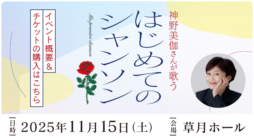 これまでジャズやロックに挑戦してきた演歌歌手の神野美伽さんが、今度はシャンソンを歌います! ただいま絶賛準備中、チケットはもう発売中。本番までに「ほぼ日」でシャンソンを楽しく学んで、当日はみんなで「オー・シャンゼリゼ」を歌いましょう! きっと素敵なコンサートになります。ぜひ、足をお運びください。