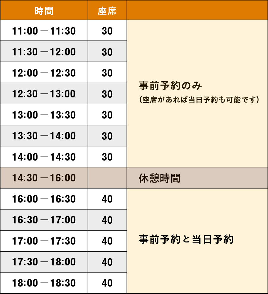 ご予約のないみなさまを席にご案内いたします。◎事前予約