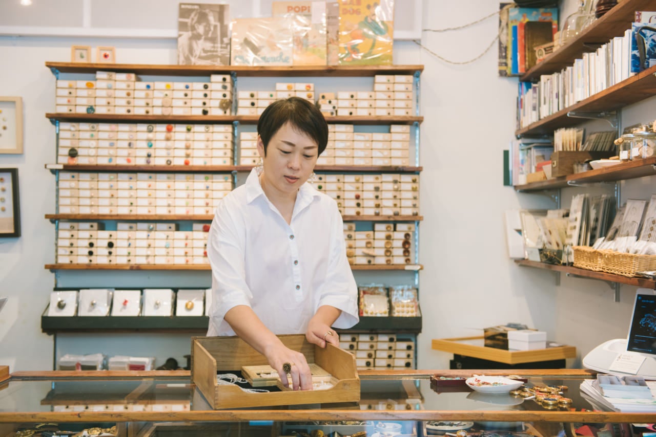 まるで工芸品のような、素敵なヴィンテージボタンを取り揃えている、東神田にあるヴィンテージボタン専門店「CO-」。小坂直子さんは買い付けを担当されています。