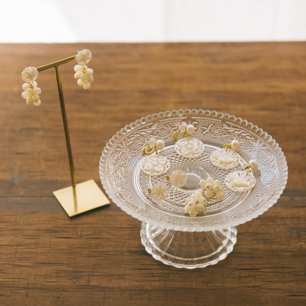 ▲ピアスやイヤリングには、ベツレヘムパールと