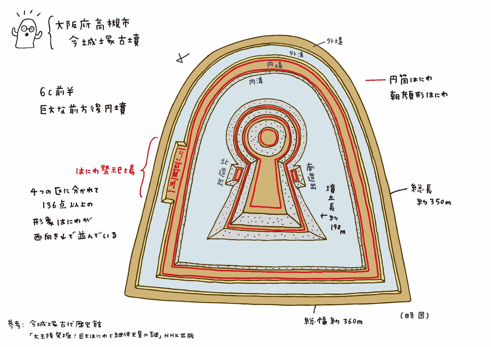 古墳を上から見た図をまず見てください。