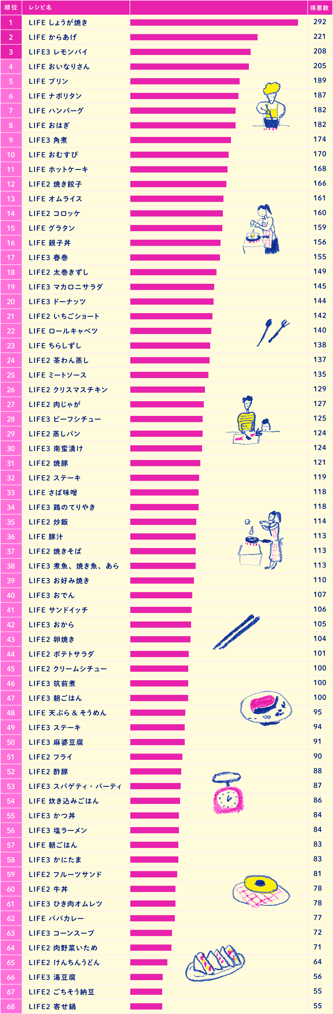 『LIFE』シリーズ最初の3巻に掲載したメニューから、