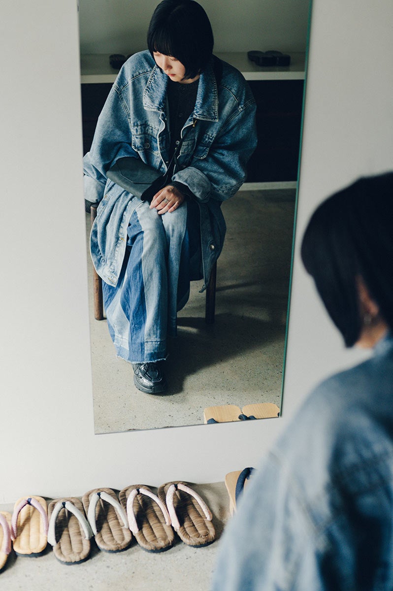 - 花緒も小倉さんの型染作品を使ったものがあり、