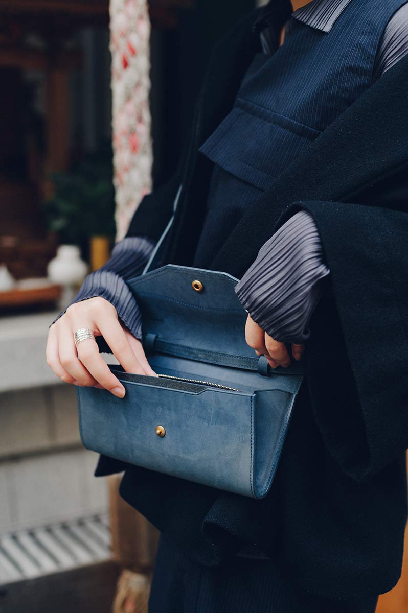 - 今回のentoanのおさいふショルダーはブルー(marine)。
