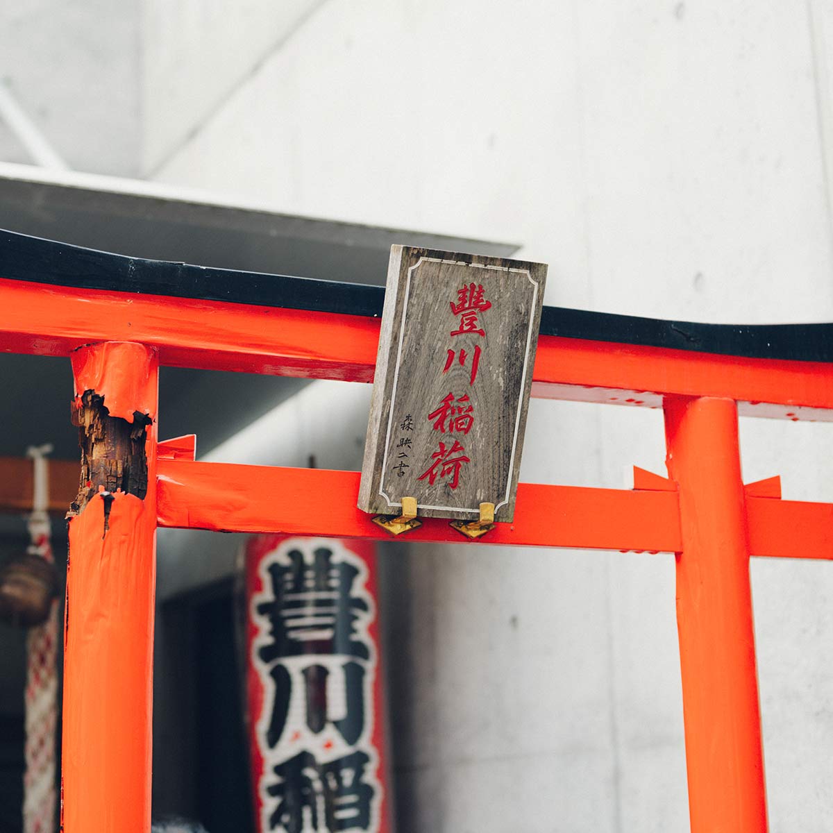 - すぐそばには、豊川稲荷の鳥居と小さなお社が。