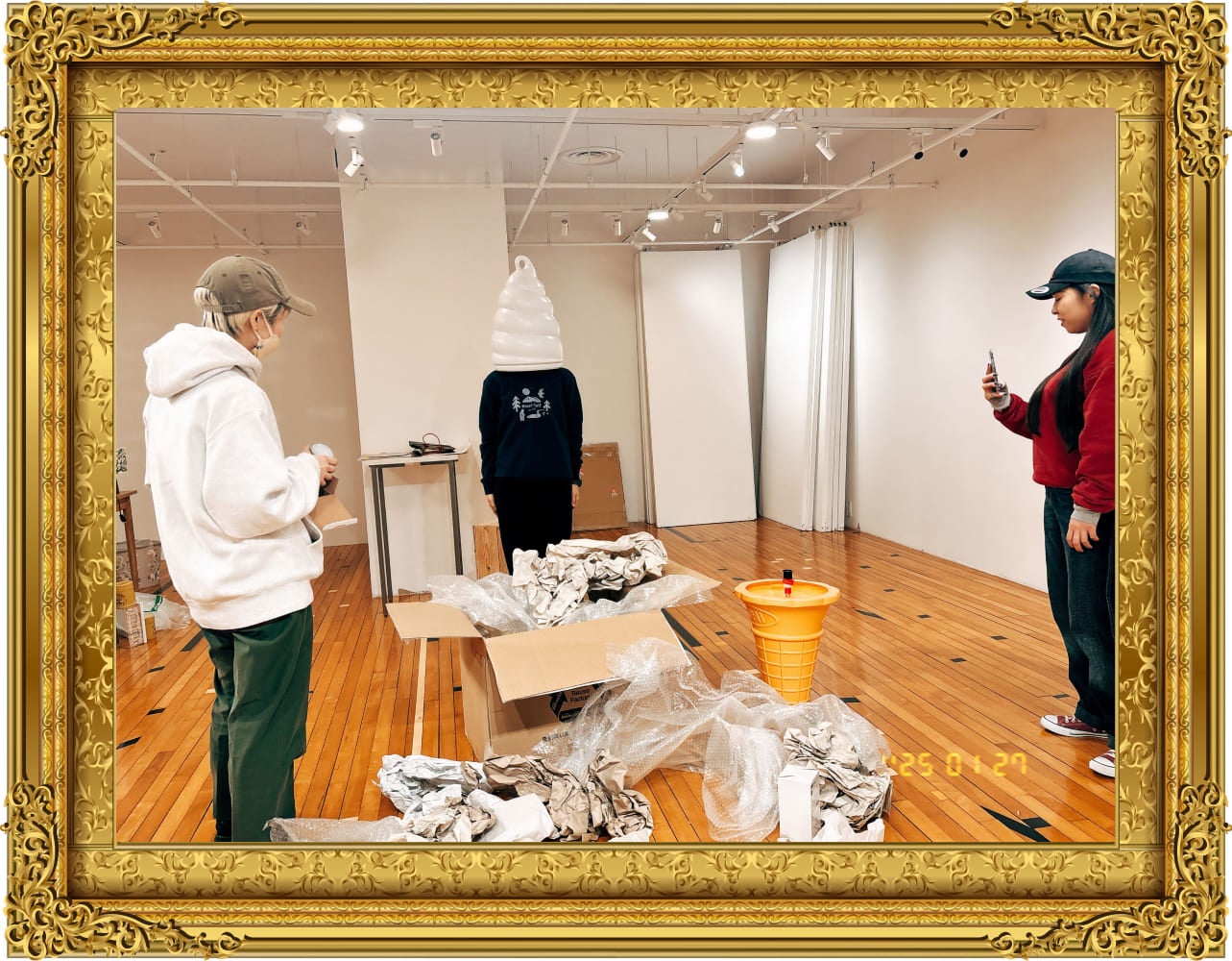 「冬なのにご当地アイスまつり」設営の様子ですね。