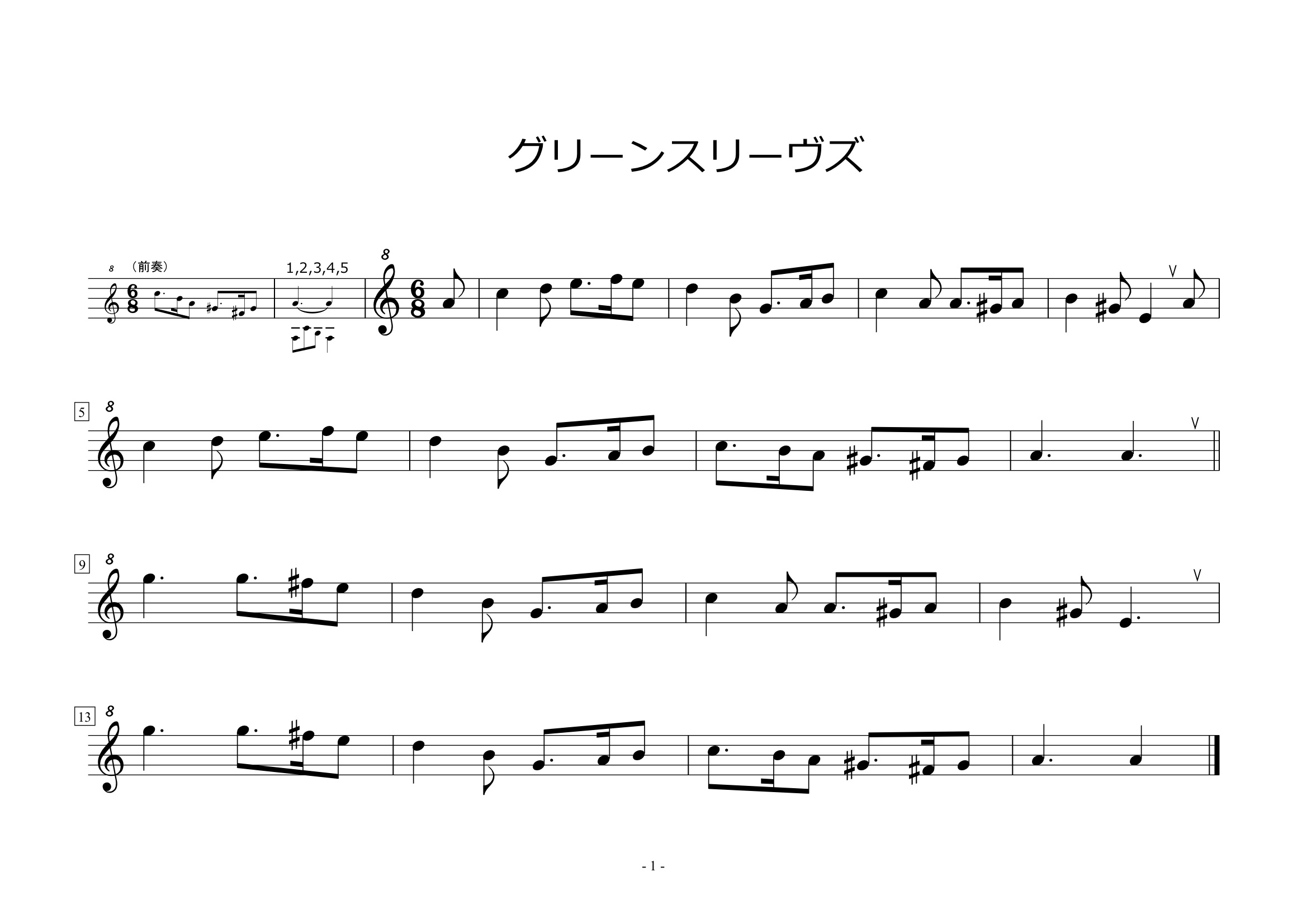 ・グリーンスリーヴズ楽譜(後ほど出てきます)