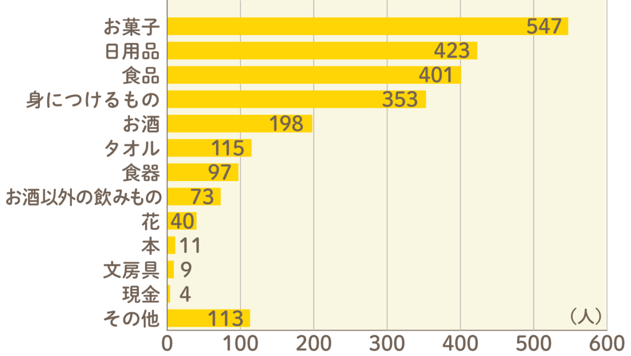 お菓子は苦手、という方も少なそうですしね。 - そして2位は、日用品。