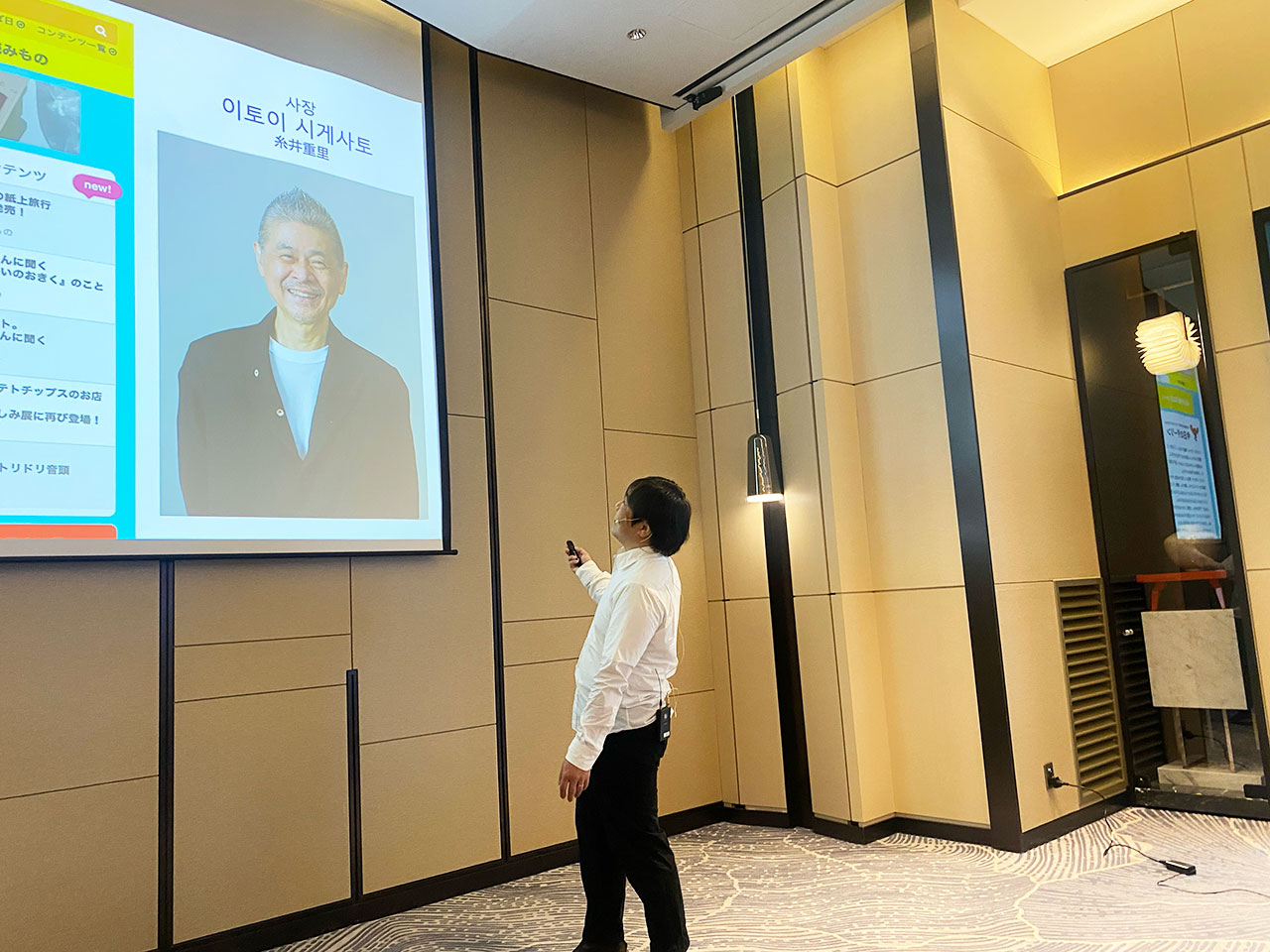 - スライドには、ほぼ日社長・糸井重里の写真も登場。