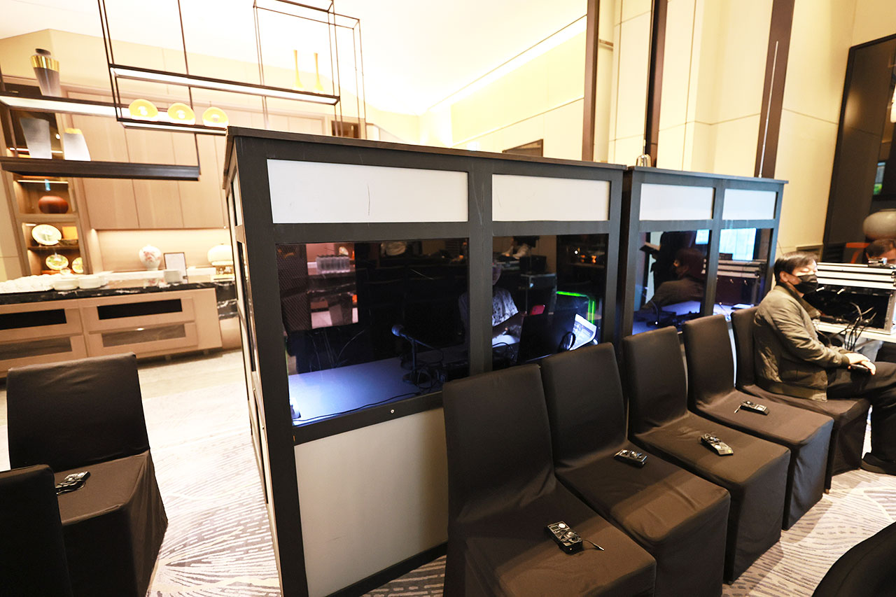 - なんと、客席の後ろには通訳ブースが。