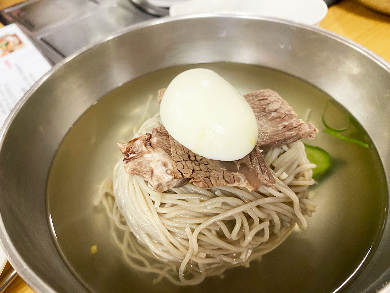 - ひんやりと胃にしみわたる、上品な味の冷麺。