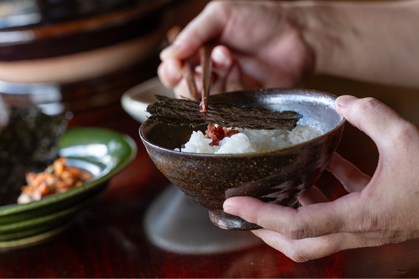 ▲シンプルに、炊き立ての土鍋ごはんに