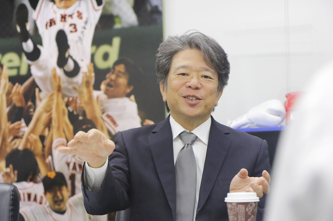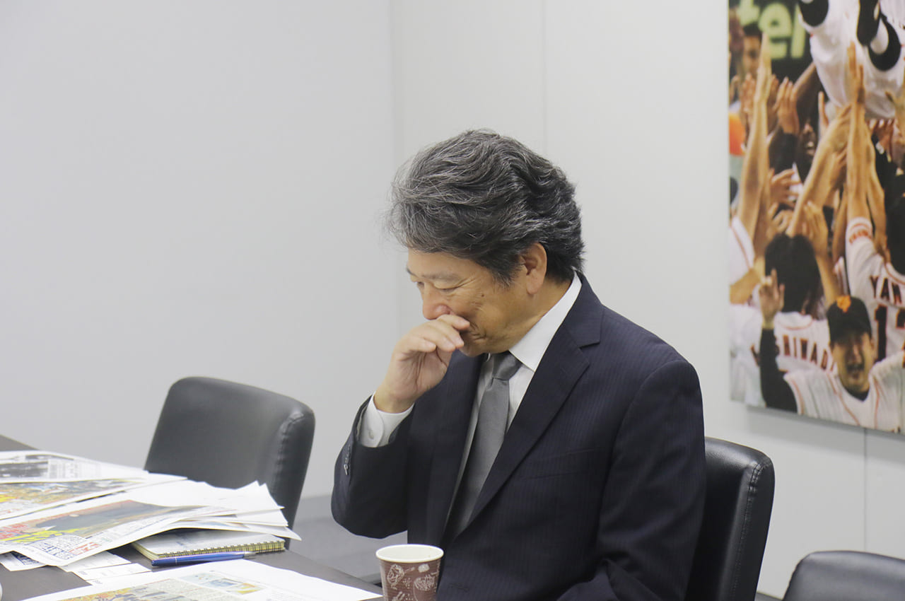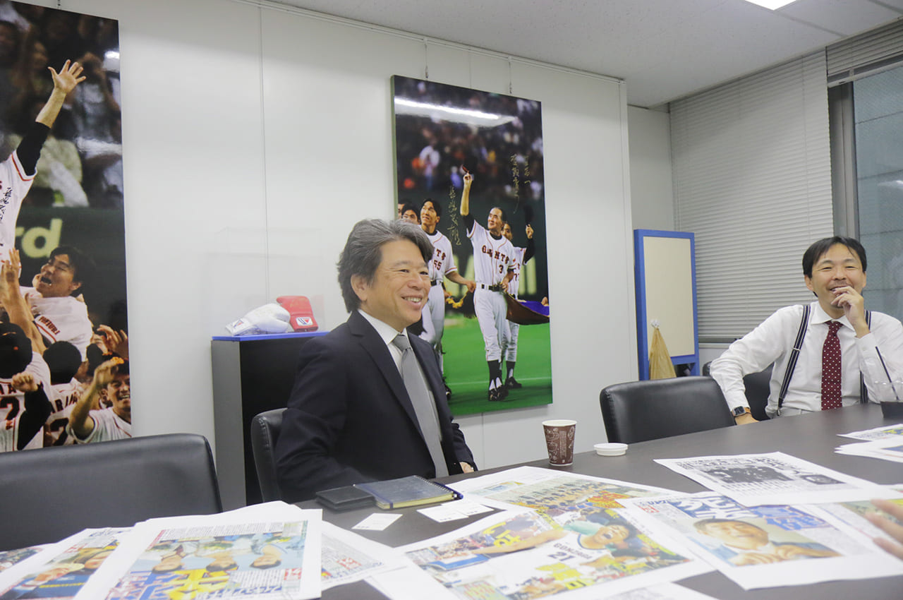 『スポーツ報知』の相沢拡さん、山本理さん、