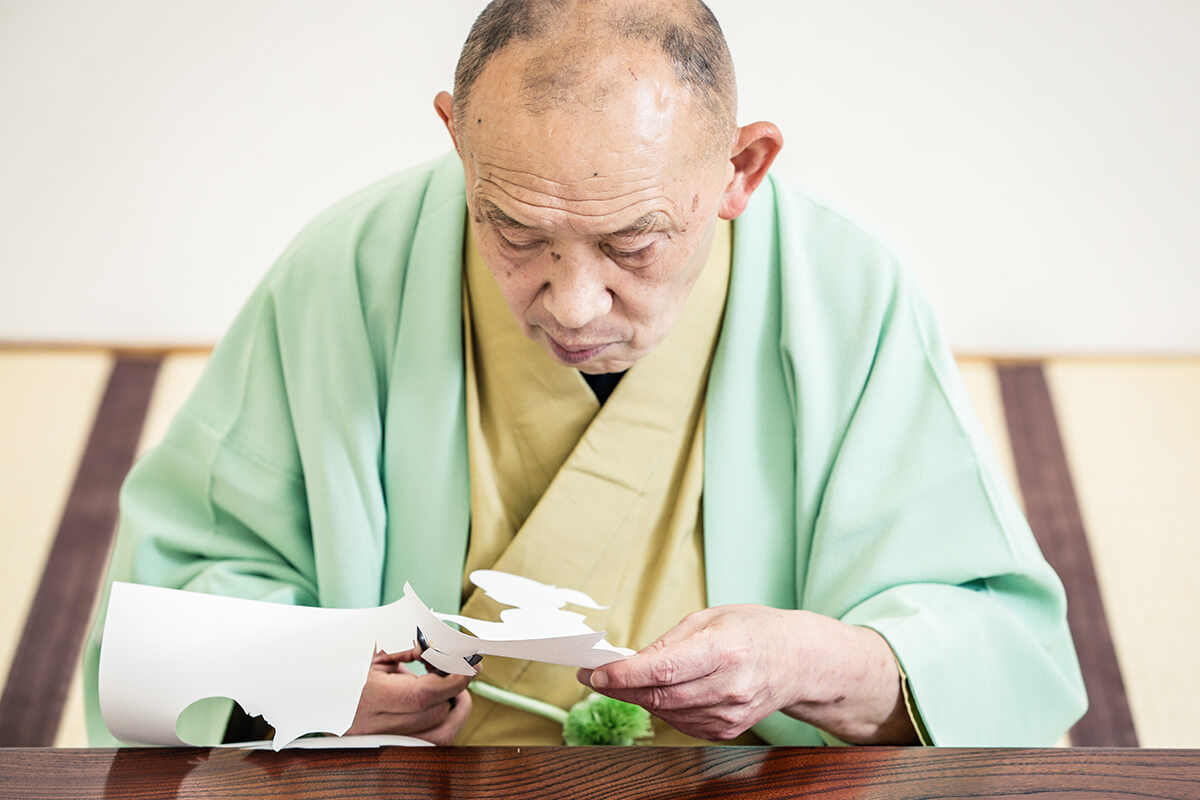 どこかの寄席に出ている林家正楽師匠。新しい年・2023年のお正月も、