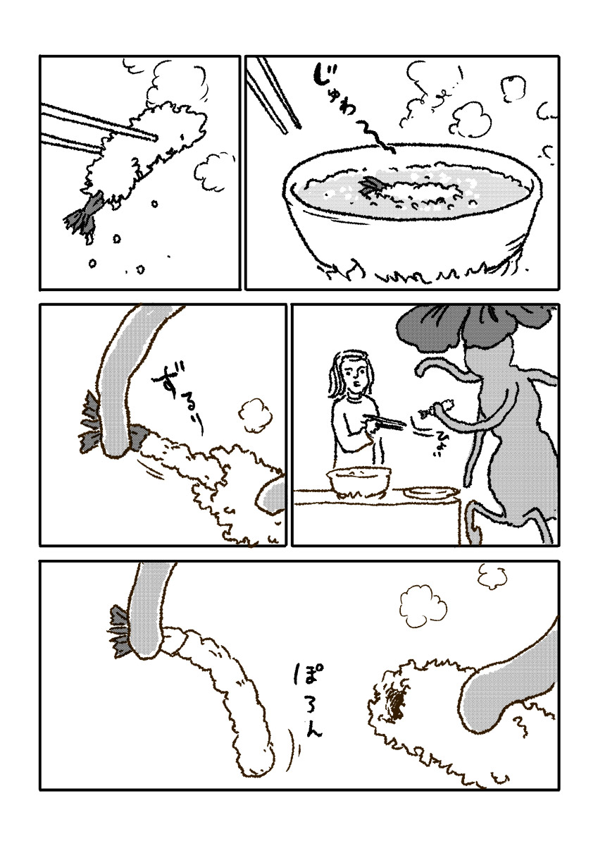 【天ぷらを揚げたそばから衣を剥離させていく植物】