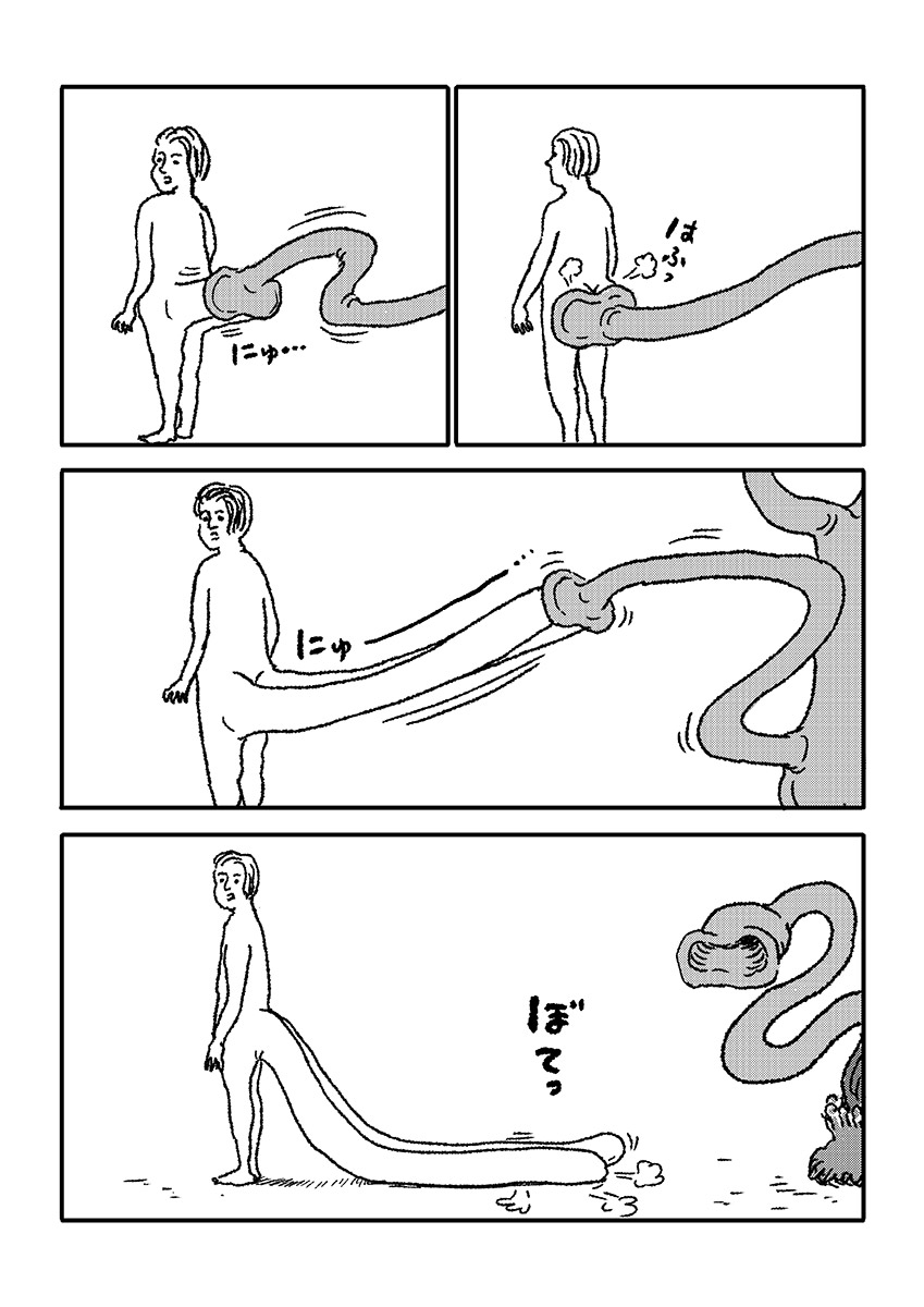 おしりに吸い付くと同時に、おしりの肉を軟化させる液体を分泌する。やわらかくなったところを強い力で引っぱり、おしりがのびる。