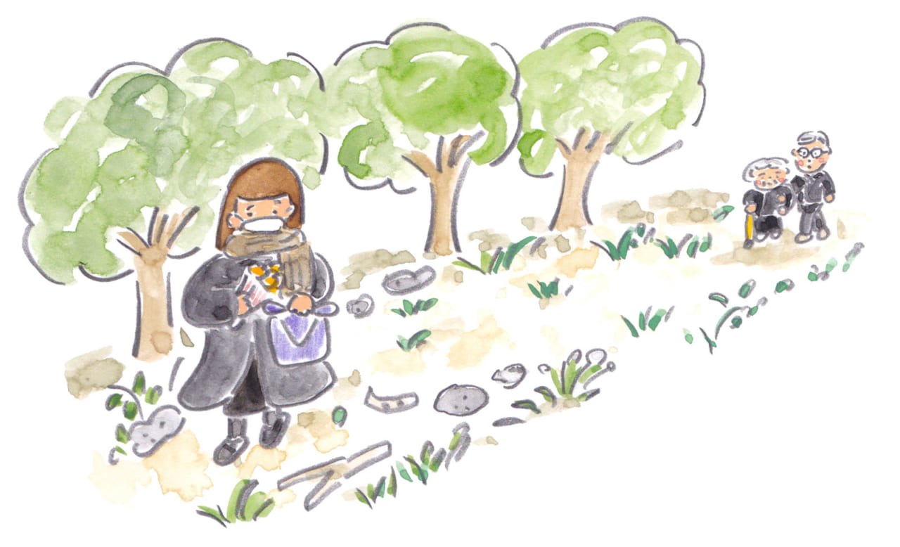 匂いを嗅いでいたいけれど、仕方なくマスクの鼻上まで