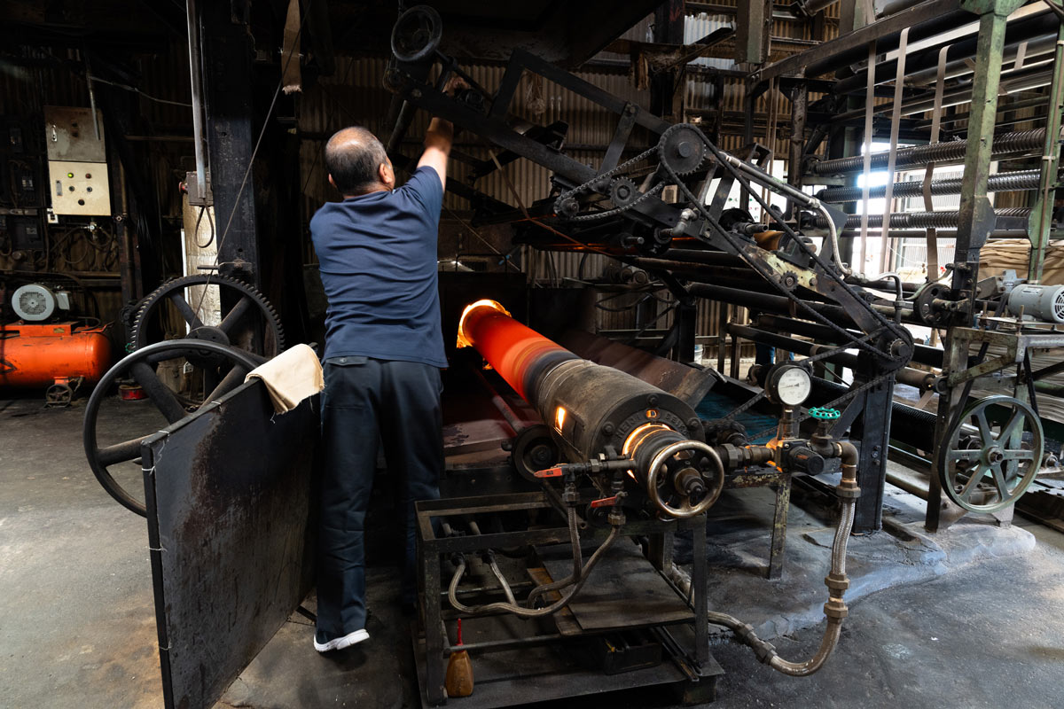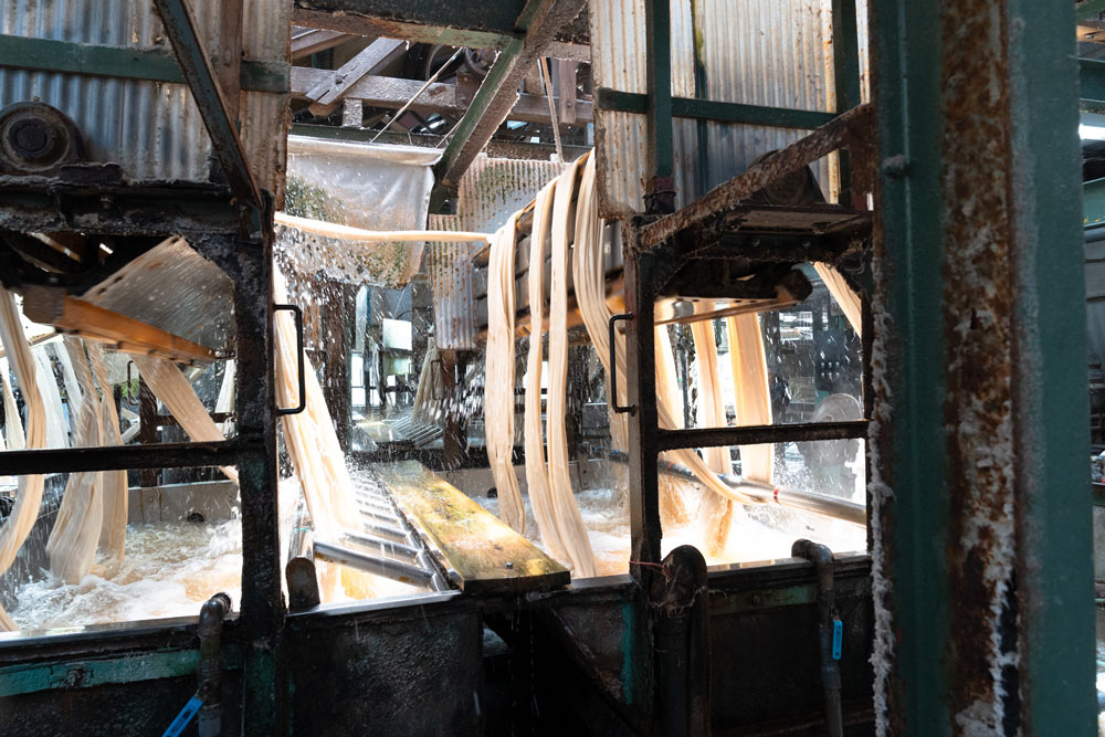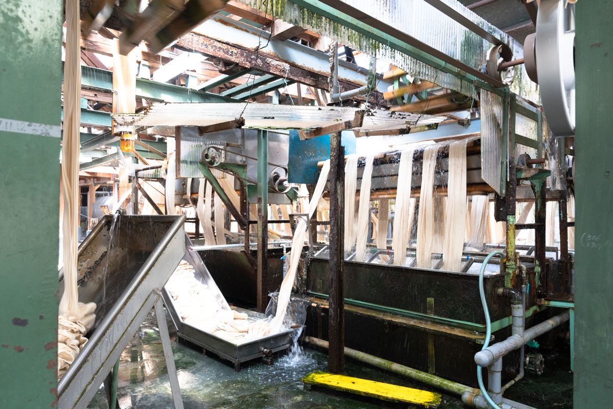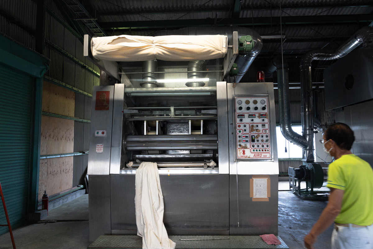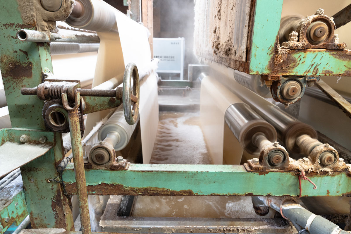 - 空気のちからで壁に生地をぶち当てることで、さらに生地をほぐして、