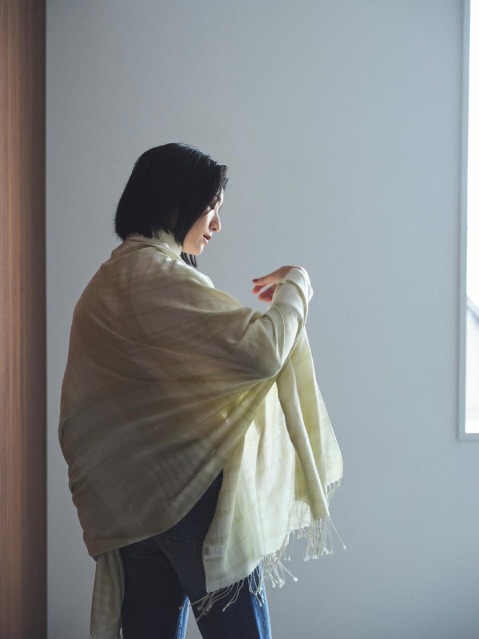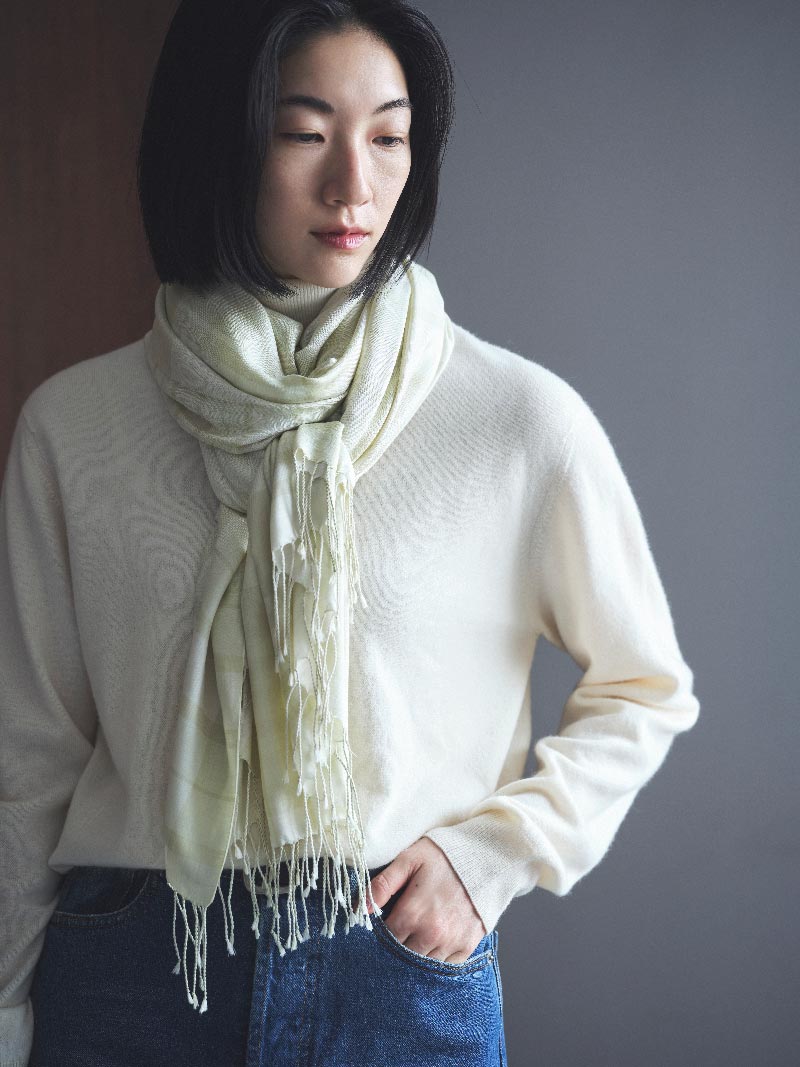 シルクの光沢が、顔の近くにくるのも効果的で。