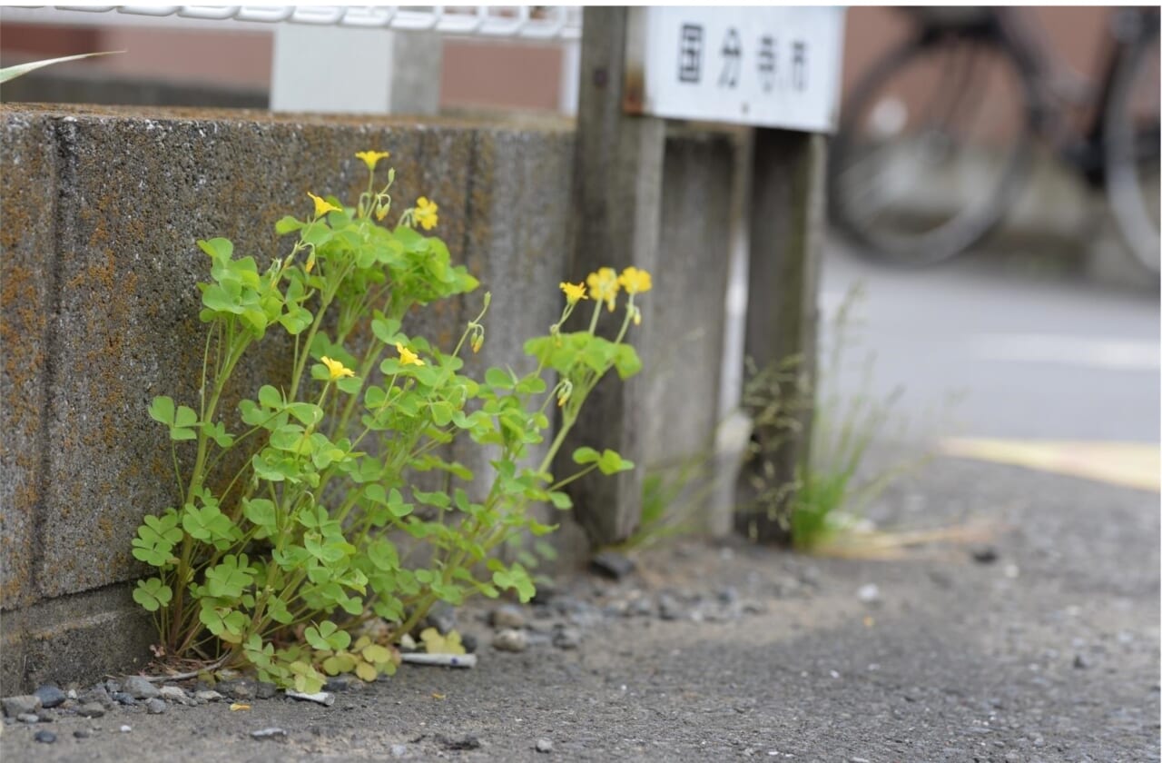 まちの道路を舞台にしています。 - たとえばカタバミの仲間で、
