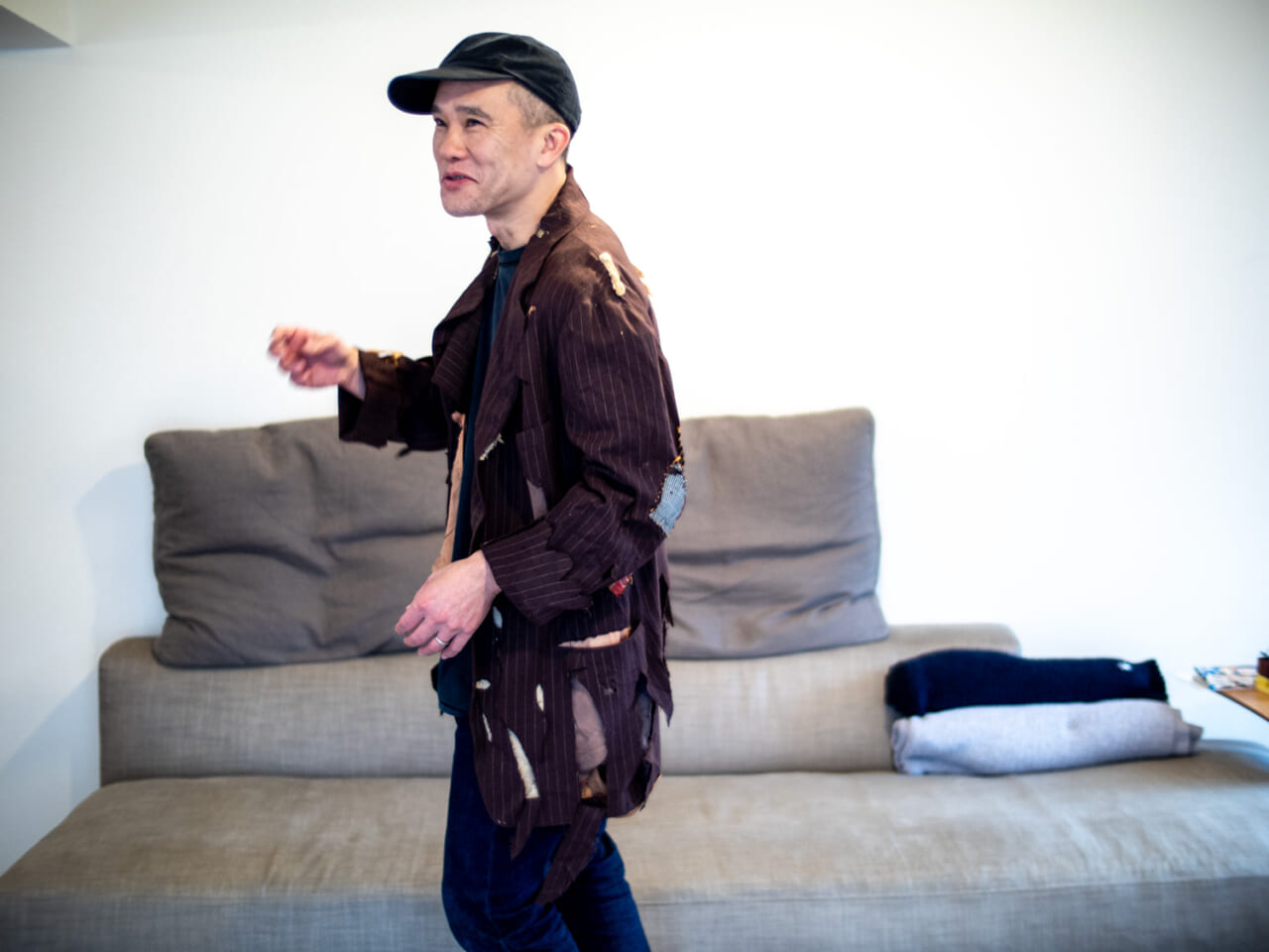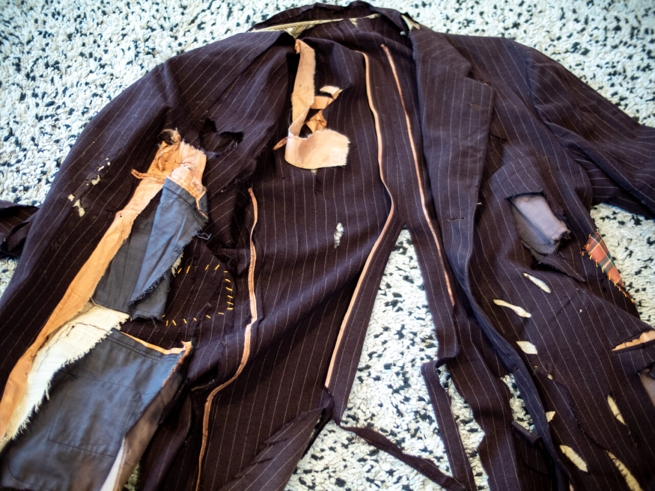 前回の「ボロボロ」で思い出しました。家族でアメリカへ行ったとき、フリマで見つけたジャケットです。カッコいいでしょ。アンティークの家具や雑貨をセレクトしましたみたいな構えの店の、古い木馬みたいな物体の脇に吊ってあったんですけど。もう、これだけ異様な雰囲気で。最初は売り物じゃないと思ったんです。ディスプレイっていうか。でも、店のおばちゃんに聞いたら「50ドル」って。安くはないです。っていうか高い。メルカリでは3000円までって決めてる自分にしたらけっこうな買い物なんだけど、気づいたら50ドル出してました。だってこんなの二度と手に入らないと思ったんで。似たようなのなら、ま、あるんです。探すとこ探せば。でも、ここまで洗練されてるのは、ちょっとない。ドリフが爆発したあとによくこんななってますけど、あのときの志村さんや加トちゃんに匹敵するほどカッコいい。つくった人、相当センスがあると思う。ただ、これと同じものが大量生産されて、サイズ別に吊るしになってたら一気にダメじゃないですか。「Mサイズあります?」「お調べしますねー」とか。とたんに覚めるというか。だから「一点もの」という意味でアートピースに近いのかも。名もなき誰かの、作品。そんなつもりでつくってないと思うけど、それがかえって「作品」っぽいかなって。そういえば、レジ袋に入れてくれるとかもなかったんで、そのまま小脇に抱えて歩いてたんです。そしたらIT企業勤務ですみたいな、小綺麗な格好をしたインド系アメリカ人のおじさんに声をかけられたんですよ。「まさかおまえ、それ買ったの?」って。「買ったよ」「いくらで?」「50ドル」「ジーザス!」って。もうね、目をまんまるにして「信じられない!」って。「どうすんだ、それ?」ってさらに聞いてくるから「結婚式で着ようと思ってる」って答えたら「Congratulation!」だって(笑)。そういえば、フリマなんかだと値段交渉がありますよね。まけてくれとか、ふつうに。でもこのときは、アートピース値切ったらカッコ悪いから言われるがままに50ドル出したんです。そしたら、そのときも店のおばちゃんビックリしてたなあ、目をまるくして(笑)。まさか50ドルで売れるとは思わなかったんでしょうね。ただ、これを「1ドルです」なんて言われても、つまんないんですよ。ありがたみがないし、話のタネにもならない。「わざわざ50ドル出して買う」って行為も含めて、何ていうのかな、「表現」なんだと思います。ちなみに今回、久々に袖を通してみたけど、めちゃくちゃ着やすいです。何も着てないみたい(笑)。センターベントが深いなあ。背中の真ん中くらいまで切れ目入ってる。こりゃあ、あったかくないわ。これからの季節には無理ですね(笑)。